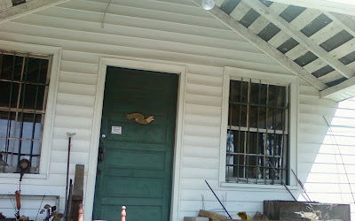 And then you have nature's art mixed with whimsical metal art. This was a delicious little cottage behind two other houses. We think this cottage and a brick house up near the road are newer but the little house beside the country store were probably the original buildings before the family grew.